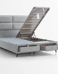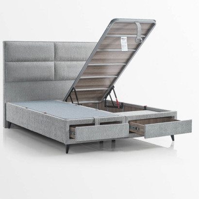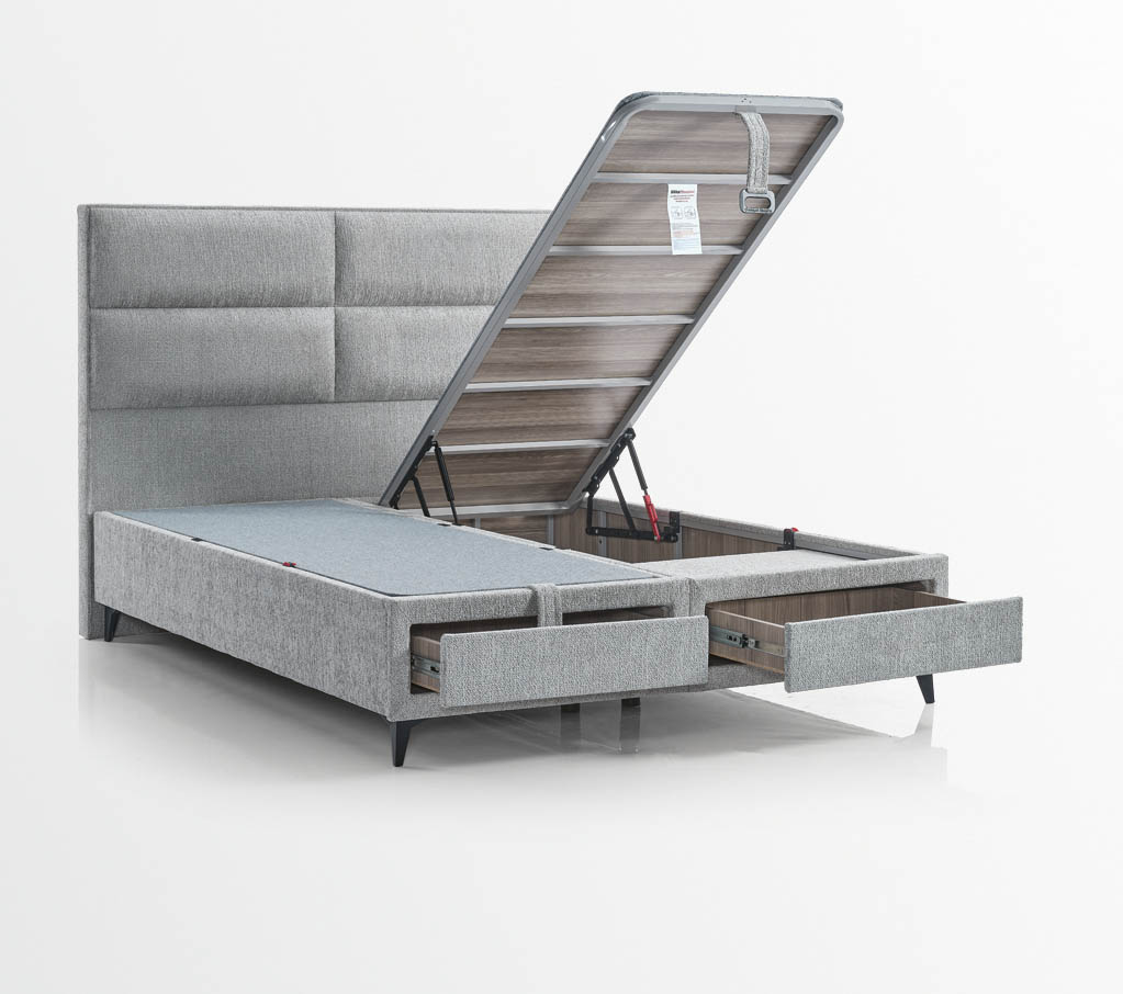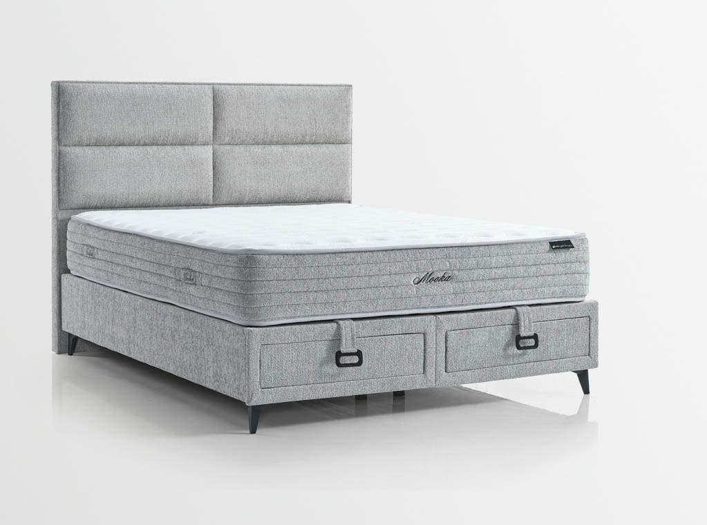 Standartně boxy využívají úložný prostor, který se ovládá z přední části postele a je vybaven vzduchovými písty, jež napomáhají velmi jednoduchému zvedání a manipulaci, při kterém se vyklopí celý povrch i s matrací. Moka je jediná postel s úložnýmm prostorem, která má také praktické šuplíky. Tyto funkční základny jsou konstruovány s ohledem na vzdušnost, proto je na několika místech celý box odvětrávaný, aby se zde mohli dobře skladovat například lůžkoviny a doplňky jako jsou polštáře, deky a podobně.
