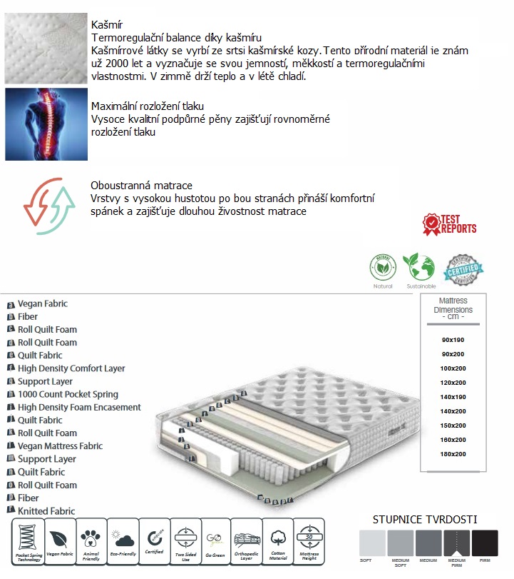 podporu těla a proto tyto matrace najdete v luxusních rezortech a nejlepších hotelech po celém světě.
